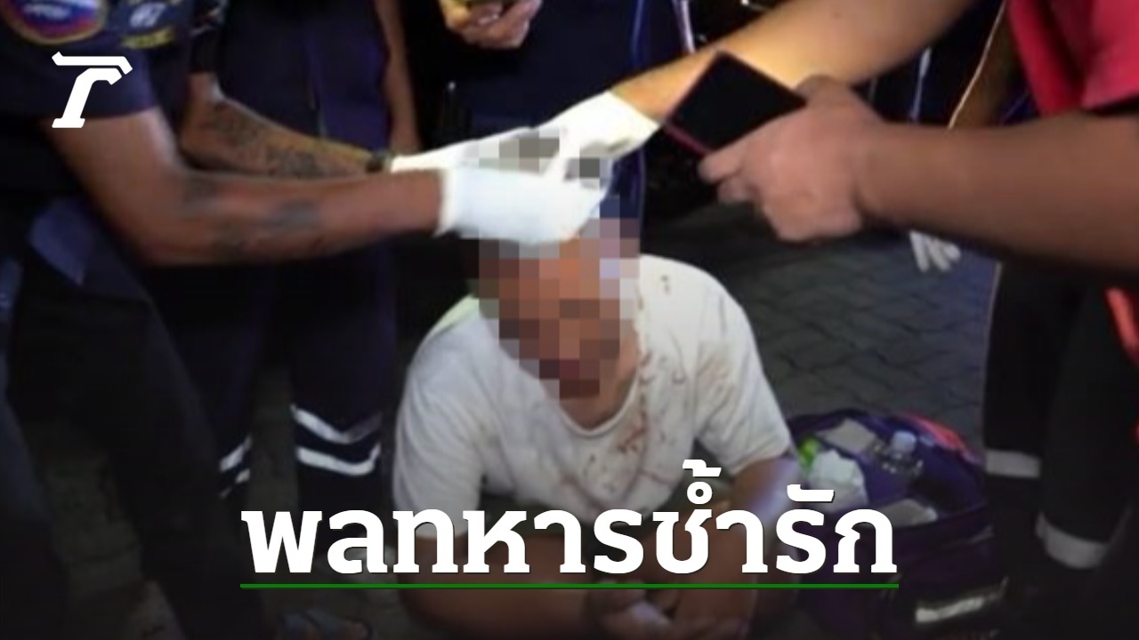 พลทหารสุดช้ำ จับได้แฟนสาวนอกใจ ควบ จยย.มาหาหวังเคลียร์รักร้าว สุดท้ายต้องเป็นฝ่ายเดินจากมา ระหว่างทางคว้าขวดฟาดหัวตัวเองเลือดอาบ สังเวยวันแห่งความรัก