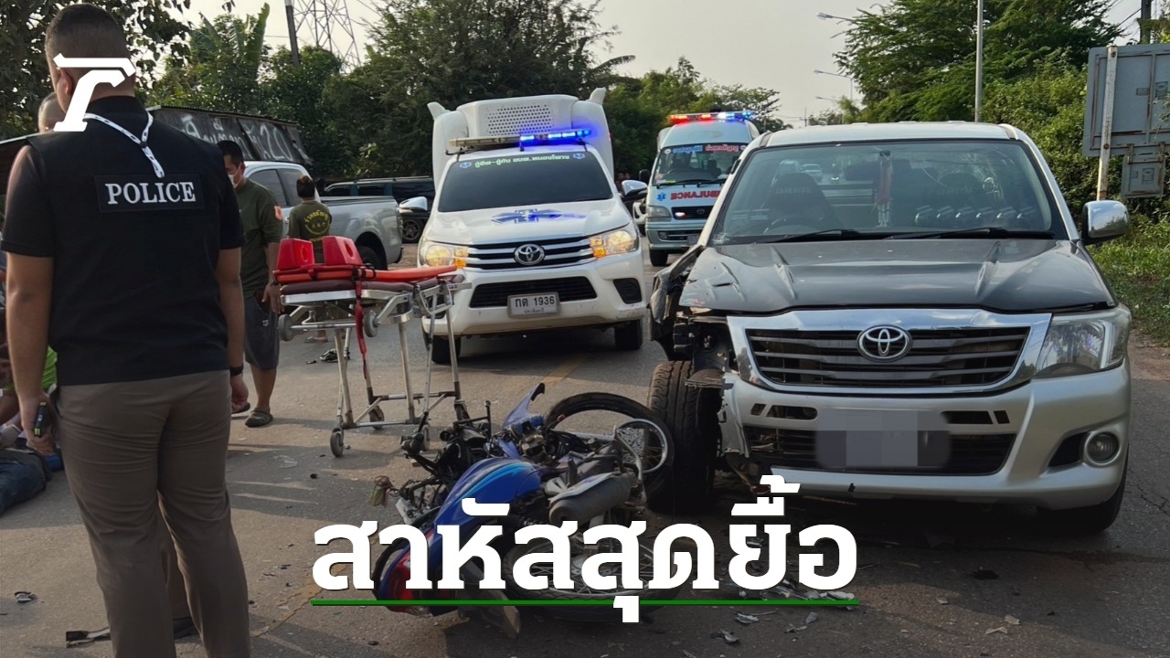 สาวทอม วัย 45 ปี ควบ จยย.พุ่งประสานงากระบะ-เจ็บสาหัสเลือดนองพื้น กู้ภัยเร่งทำ CPR ยื้อชีวิต สลด ไม่รอดเป็นศพดับสนิทคาที่