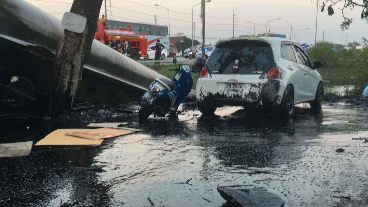 ความคืบหน้าเมื่อวันที่ 28 ก.พ. 2566 นายอภิพงศ์ สัทธาพงศ์ นักวิชาการสิ่งแวดล้อมชำนาญการ สำนักงาทรัพยากรธรรมชาติและสิ่งแวดล้อมจังหวัดระยอง พร้อมด้วยเจ้าหน้าที่ได้เดินทางมาบริเวณที่เกิดอุบัติเหตุรถยางมะตอยพลิกคว่ำจนยางมะตอยไหลทะลักออกมาจำนวนมาก บริเวณหน้าร้านแอร์ ริมถนนสาย 36 ต.ทับมา อ.เมือง จ.ระยอง เพื่อตรวจสอบและหาแนวทางกำจัดยางมะตอยที่ไหลออกมา พบว่ายางมะตอยที่ไหลลงในลำรางสาธารณะริมถนนยังไม่มีการดำเนินการกำจัด ส่งกลิ่นเหม็นคละคลุ้งไปทั่วบริเวณ ยังไม่มีการดำเนินการใดๆ