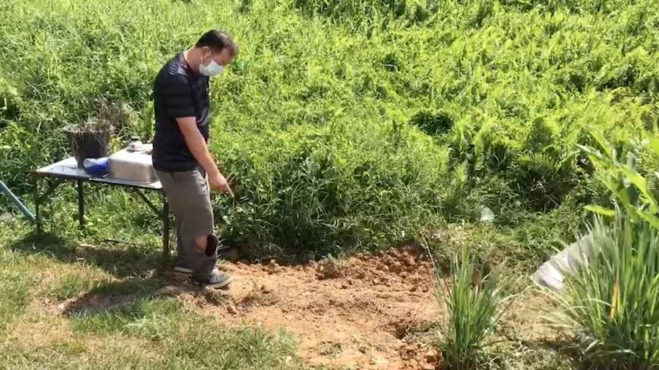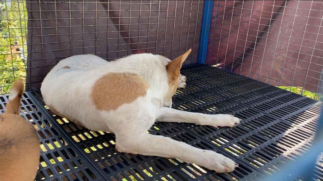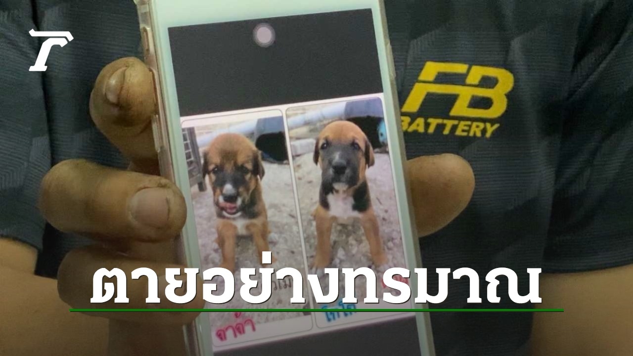 ลูกสุนัข 2 ตัวที่ถูกยางมะตอยราดตายแล้ว สุดทรมานสุกไปทั้งตัว เจ้าของยังทำใจไม่ได้ รับร่างมาฝังข้างกรงแม่และน้องคอกเดียวกัน ส่วนยางมะตอยที่ไหลท่วมยังไร้การกำจัด จนท.ปภ.เก็บตัวอย่างน้ำไปตรวจสอบ
