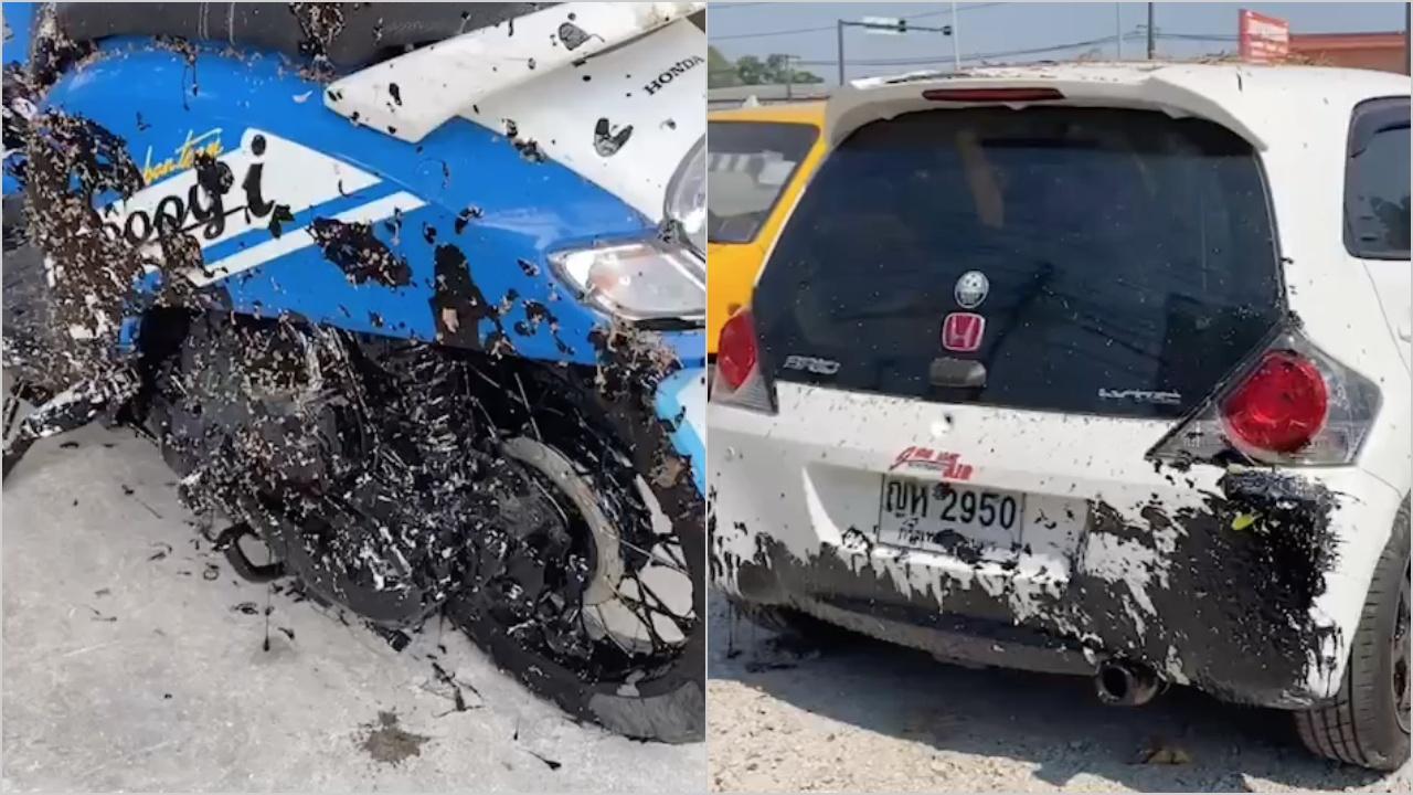 จากกรณีรถบรรทุกยางมะตอยมาจำนวน 29 ตัน เสียหลักพุ่งลงข้างทาง ริมถนนสาย 36 ต.ทับมา อ.เมือง จ.ระยอง จนเป็นเหตุให้แท็งก์ยางมะตอยที่บรรทุกมาเอียงจนยางมะตอยไหลทะลักออกมา เป็นจังหวะที่ลูกสุนัขเพศผู้และเพศเมียสองตัวเล่นอยู่ในบริเวณดังกล่าวถูกยางมะตอยไหลราดท่วมร่างทั้งสองตัว ร้องครวญครางด้วยความเจ็บปวด เป็นที่อนาถใจแก่ผู้พบเห็น เจ้าของรีบช่วยแต่ก็ทำอะไรไม่ได้ ก่อนจะรีบนำตัวสุนัขทั้งสองตัวส่งโรงพยาบาลสัตว์ ล่าสุดอาการเป็นตายเท่ากัน นอกจากนี้ยังมีรถจยย.และรถยนต์ได้รับความเสียหาย ต่อมาหน่วยงานที่เกี่ยวข้องได้เข้ามาตรวจสอบ เตรียมหาวิธีกำจัดยางมะตอยที่ไหลทะลักออกมา ด้านเจ้าสุนัขเผยทั้งน้ำตา เพิ่งปล่อยสุนัขออกมาวิ่งเล่นได้ไม่นานก็มาเกิดเหตุ เสียใจมาก ตามข่าวที่เสนอไป