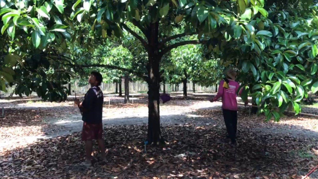 หนุ่มเจ้าของสวนแห่งนี้ ด้วยความที่เป็นวัยรุ่นสมัยใหม่ที่ลงมือทำเอง แม้กระทั่งกิ่งต้องใช้เชือกมัด ป้องกันลมพายุหรือคนเก็บมังคุดปีนขึ้นไปไม่หัก หรือทำให้ลูกมังคุดร่วงหล่นได้ จึงลงทุนใช้เชือกและมีวิธีการดูแลสวนมังคุดเป็นอย่างดี ทำให้ต้นมังคุดโล่งโปร่ง มองสบายตา แต่มองเข้าไปในต้นเห็นลูกมังคุดได้อย่างชัดเจน จึงดีใจช่วงนี้มังคุดสวนของคุณแซมเองออกเป็นชุดแรก และได้เก็บชุดแรกประมาณหนึ่งลัง ตกลังละ 5,000 บาทต่อ 25 กิโลกรัม โดยมีญาติๆ และลูกชายมาร่วมเก็บในครั้งนี้ เพราะยังจ้างคนเก็บไม่ได้ มังคุดยังออกน้อย.