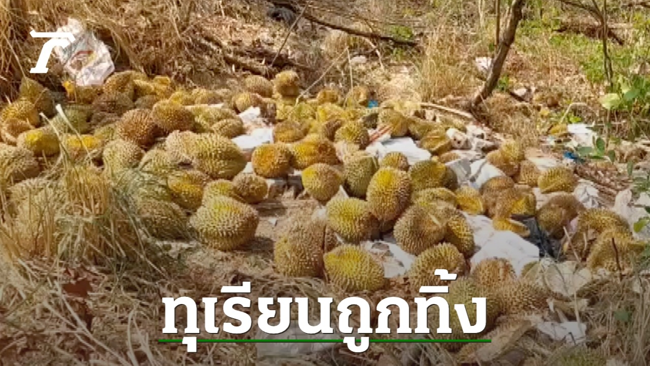 วันที่ 6 เมษายน 2566 ผู้สื่อข่าวเดินทางไปยังบริเวณ 5 แยกวัดป่าอัมพวัน หมู่ 11 ต.หนองรี อ.เมือง จ.ชลบุรี หลังมีชาวบ้านพบกองทุเรียนจำนวนมากกองอยู่ริมถนนเมื่อไปถึงพบว่ามีทุเรียนหลายขนาดถูกนำมาทิ้งไว้บางลูกอยู่ในตะกร้ารวมๆ กว่า 100 กิโลกรัม
