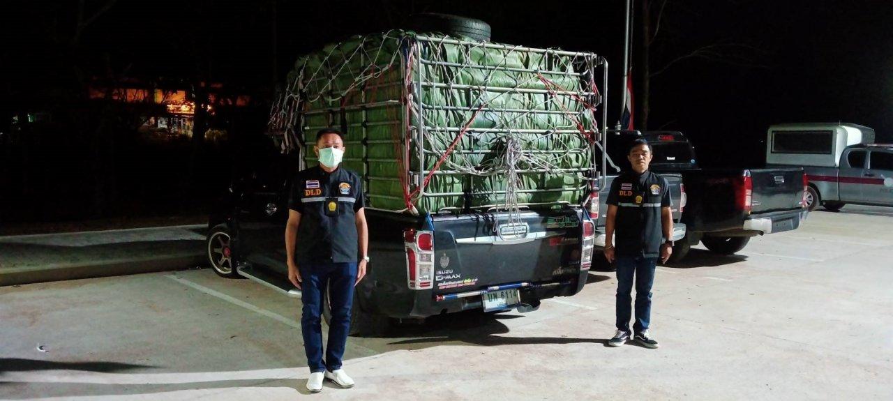 ตรวจสอบภายในกระบะท้ายรถพบซากหมูชำแหละแช่แข็งบรรจุในถุงพลาสติก ติดสติกเกอร์เป็นซากหมูจากประเทศรัสเซีย อัดแน่นเต็มท้ายกระบะโดยมีผ้าใบสีเขียวปิดทับ น้ำหนักเฉพาะซากหมูรวม 3,600 กก. ตรวจสอบไม่มีเอกสารการนำเข้า ส่งออก และใบอนุญาตเคลื่อนย้ายซากสัตว์ จึงควบคุมตัวนายธนพนธ์พร้อมของกลางรถยนต์กระบะและซากหมูแช่แข็ง มาสอบสวนที่ สภ.คลองหาด จ.สระแก้ว