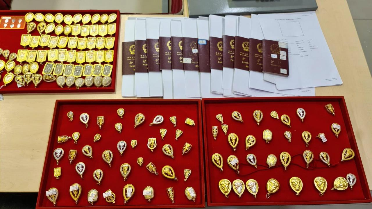 วันที่ 6 พ.ค. 66 พลตำรวจตรี กัมพล ลีลาประภาภรณ์ ผู้บังคับการตำรวจภูธรจังหวัดชลบุรี พร้อมด้วย พ.ต.อ.ปัญญา ดำเล็ก ผกก.สภ.สัตหีบ ตำรวจท่องเที่ยว และตำรวจตรวจคนเข้าเมือง สนธิกำลังตำรวจเข้าจับกุมชาวจีน 12 คน เป็นชาย 11 คน และหญิง 1 คน อายุระหว่าง 30 - 58 ปี เดินทางเข้ามาในประเทศไทย ฐานะนักท่องเที่ยว ฐานร่วมกันประกอบธุรกิจจำหน่ายวัตถุมงคล ภายในบริเวณวัดเขาชีจรรย์ ต.บางเสร่ อ.สัตหีบ จ.ชลบุรี เข้าข่ายความผิด “บุคคลต่างด้าวทำงานโดยไม่ได้รับอนุญาต” โดยมีของกลางพระเครื่องเลี่ยมทองไมครอน อาทิ พระสมเด็จ พระปิดตา หลวงพ่อโสธร พระพิฆเนศ พระแก้วมรกต พระพรหม รวม 141 องค์
