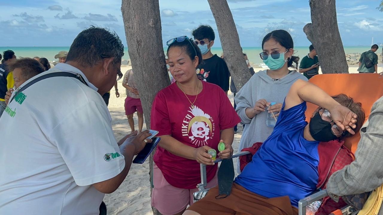 นางบัณฑิตา ชัยคำ อายุ 46 ปี ป้าของผู้เสียชีวิต เผยว่า มีลางสังหรณ์ เพราะหลานชายวัย 14 ที่พามาเที่ยว อยากจะเล่นน้ำทะเลจนผิดสังเกต ทั้งที่ก่อนหน้านี้ ไปเที่ยว กินบุฟเฟต์ทุเรียนกันที่สวนสุภัทราแลนด์ ตอนที่พากันกินทุเรียนอยู่ ยังกินไม่ทันหมดเหลืออีกพูนึง หลานก็บอกว่าอิ่มแล้ว แม่ก็บอกให้กินให้หมด เพราะหยิบมาแล้ว กินไม่หมดเดี๋ยวถูกปรับ หลานก็รีบกินทั้งที่อิ่มแล้ว พอมาถึงทะเล หลานก็มีท่าทางดีใจ รีบวิ่งลงทะเล แม่ก็เรียกให้ขึ้นมาบอกให้มาเปลี่ยนกางเกงยีนส์ หลานก็ขึ้นมาเปลี่ยน แล้วลงไปเล่น ด้วยความดีใจ แม่กับคนอื่นๆ ก็ตามไปเล่นด้วย จู่ๆ ก็ได้ยินเสียงเอะอะ เห็นหลานถูกคลื่นซัดลอยกลางทะเล ทุกคนลงไปช่วยแล้ว แต่ก็ช่วยไม่ได้ เพราะคลื่นแรงมาก