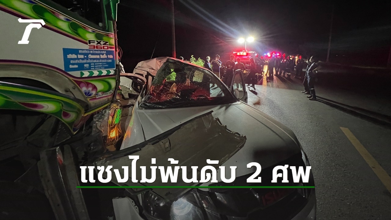 กระบะพยายามแซงรถเทรลเลอร์ แต่แซงไม่ทันพ้น ชนกับรถบรรทุกพ่วง 18 ล้อที่วิ่งสวนมา ทำให้คนในรถกระบะเสียชีวิต 2 ศพ เจ็บสาหัส 1