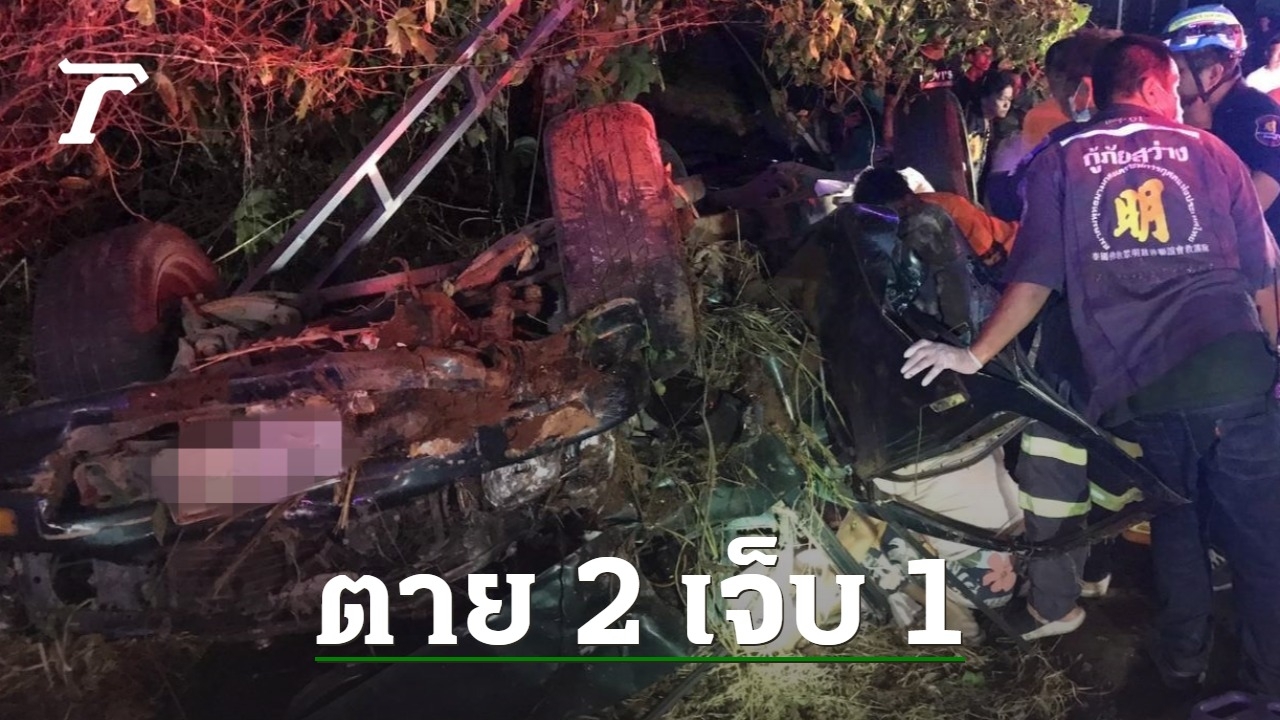 "อุบัติเหตุสลด" ถังน้ำมัน 20 ลิตร ตกกลางถนน กระบะเหยียบเสียหลัก-ลื่นไถลชนกัน 3 คันรวด ตาย 2 ศพ บาดเจ็บ 1 ราย