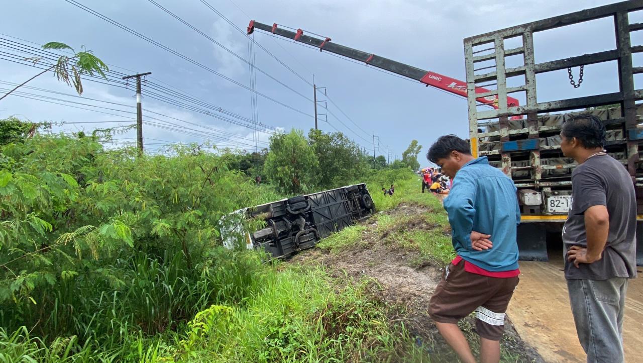 เมื่อเวลา 14.00 น. วันที่ 9 ก.ค. 66 พ.ต.ต.สุริยา กุลบุญญา สว.สอบสวน สภ.นิคมพัฒนา ระยอง ได้รับแจ้งเกิดอุบัติเหตุ รถทัวร์นำเที่ยวพลิกคว่ำ จนเป็นเหตุให้นักท่องเที่ยวในรถได้รับบาดเจ็บ และติดคารถ เหตุเกิดบนถนนสาย 36 (ขาออกเมืองระยอง) ต.มาบข่า อ.นิคมพัฒนา จ.ระยอง จึงประสานแพทย์เวร รพ.นิคมพัฒนา พร้อมด้วยหน่วยกู้ภัยสว่างพรกุศลระยอง และมูลนิธิสยามระยอง เดินทางไปตรวจสอบ
