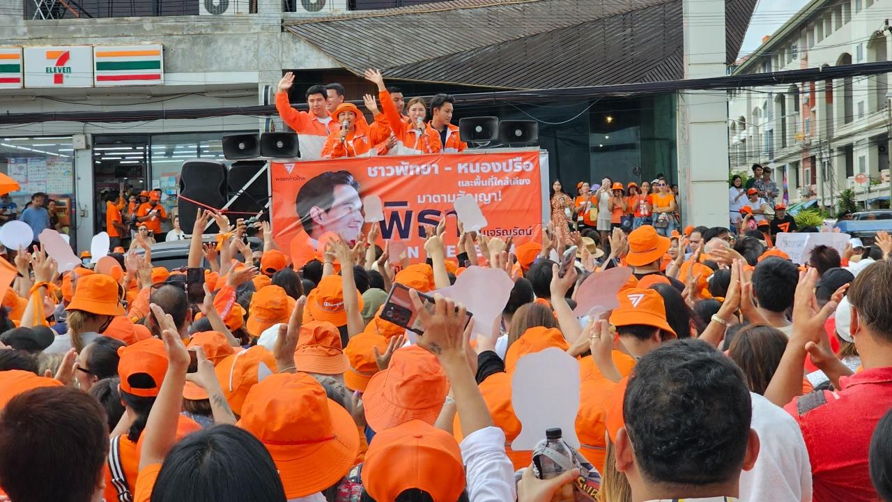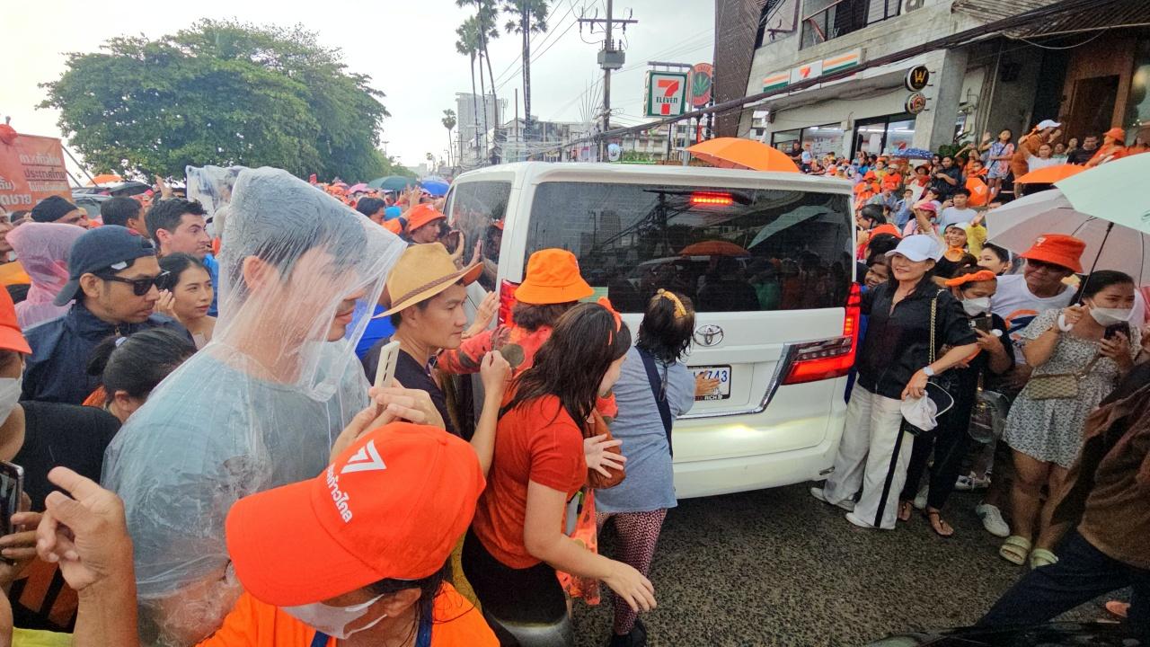 แฟนคลับพัทยาแห่ต้อนรับ พิธา ลิ้มเจริญรัตน์ หน.พรรคก้าวไกลไปขอบคุณที่มอบคะแนนเสียงให้ท่วมท้น ไม่วายส่องทะเบียนรถที่ใช้เดินทาง หวังมอบโชคเหมือนครั้งที่ไปขอบคุณชาวลำปาง