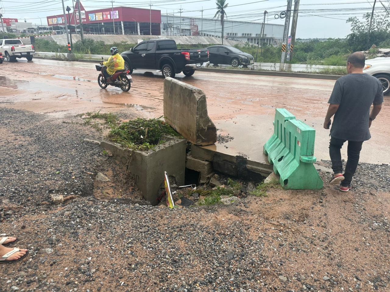 วันที่ 23 กรกฎาคม 2566 มีรายงานว่า บริเวณหน้าร้านประดับยนต์ FCS ตั้งอยู่ที่หมู่ 3 ต.บ่อวิน อ.ศรีราชา จ.ชลบุรี กล้องวงจรปิดที่ร้านสามารถจับภาพเหตุการณ์ ชายรายหนึ่งขับรถจักรยานยนต์ฝ่าสายฝนที่ตกหนัก บริเวณถนนเส้น รย.3013 บ่อวิน-ปลวกแดง จนเกิดอุบัติเหตุตกลงไปในท่อระบายน้ำริมถนนที่ไม่มีฝาปิด ทำให้รถจักรยานยนต์ ยี่ห้อฮอนด้า สกู๊ปปี้ สีแดงขาว ตกลงไปในท่อ ได้รับความเสียหาย ชายผู้ขับขี่ได้รับบาดเจ็บเล็กน้อย