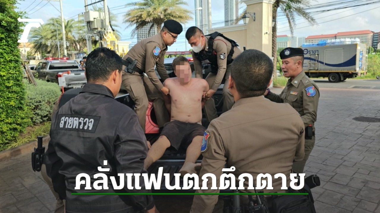 สาวรัสเซีย วัย 32 ปี ถูกพบเป็นศพตกจากห้องพักชั้น 7 คอนโดฯ ย่านนาจอมเทียน ชลบุรี เสียชีวิต ส่วนในห้องพักพบแฟนหนุ่มกำลังคลุ้มคลั่ง ต้องใช้ตำรวจถึง 8 นาย ช่วยกันจับตัวไปโรงพัก แกล้งทำเป็นบาดเจ็บ นอนแน่นิ่ง