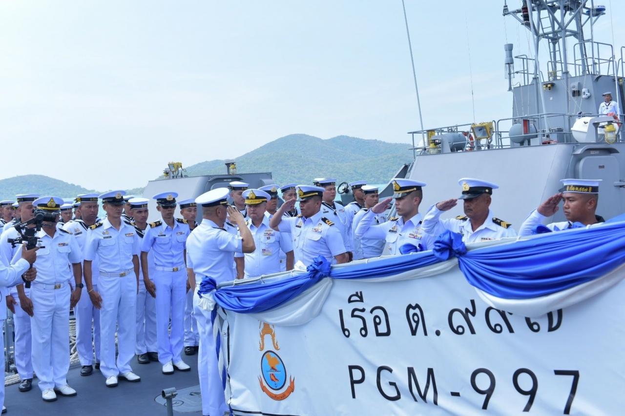 "บิ๊กดุง" รับมอบเรือตรวจการณ์ใกล้ฝั่ง หรือ เรือ ต.997-ต.998 ณ ท่าเรือแหลมเทียน ฐานทัพเรือสัตหีบ เพื่อใช้ในภารกิจ ตรวจการณ์สกัดกั้น ลาดตระเวน คุ้มครองเรือประมง และเรือพาณิชย์ ชายฝั่งอ่าวไทย และอันดามัน โดยทั้ง 2 ลำเป็นต่ออุตสาหกรรมการต่อเรือภายในประเทศ