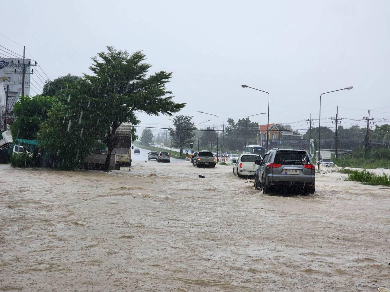 ฝนถล่มเมืองระยอง ทำน้ำท่วมหนักถนนสาย บขส.ใหม่-หนองโพรง ทั้ง 2 ฝั่งยาว 50 เมตร บางจุดสูง 1.4 เมตร รถจมน้ำหลายคัน เจ้าหน้าที่เร่งระบายน้ำลงคลอง ผวจ.ระยอง เตรียมลงพื้นที่ ติดตามสถานการณ์