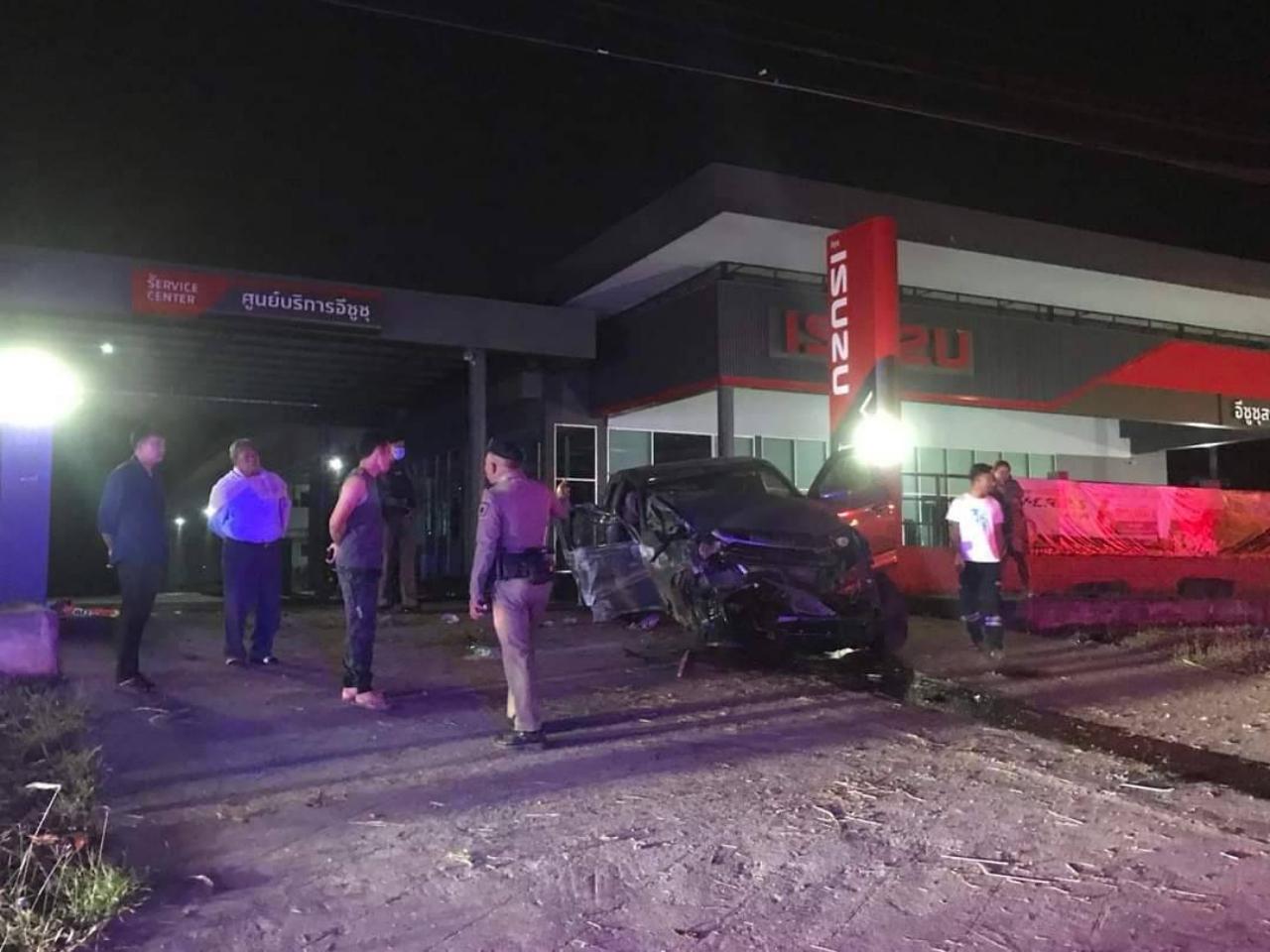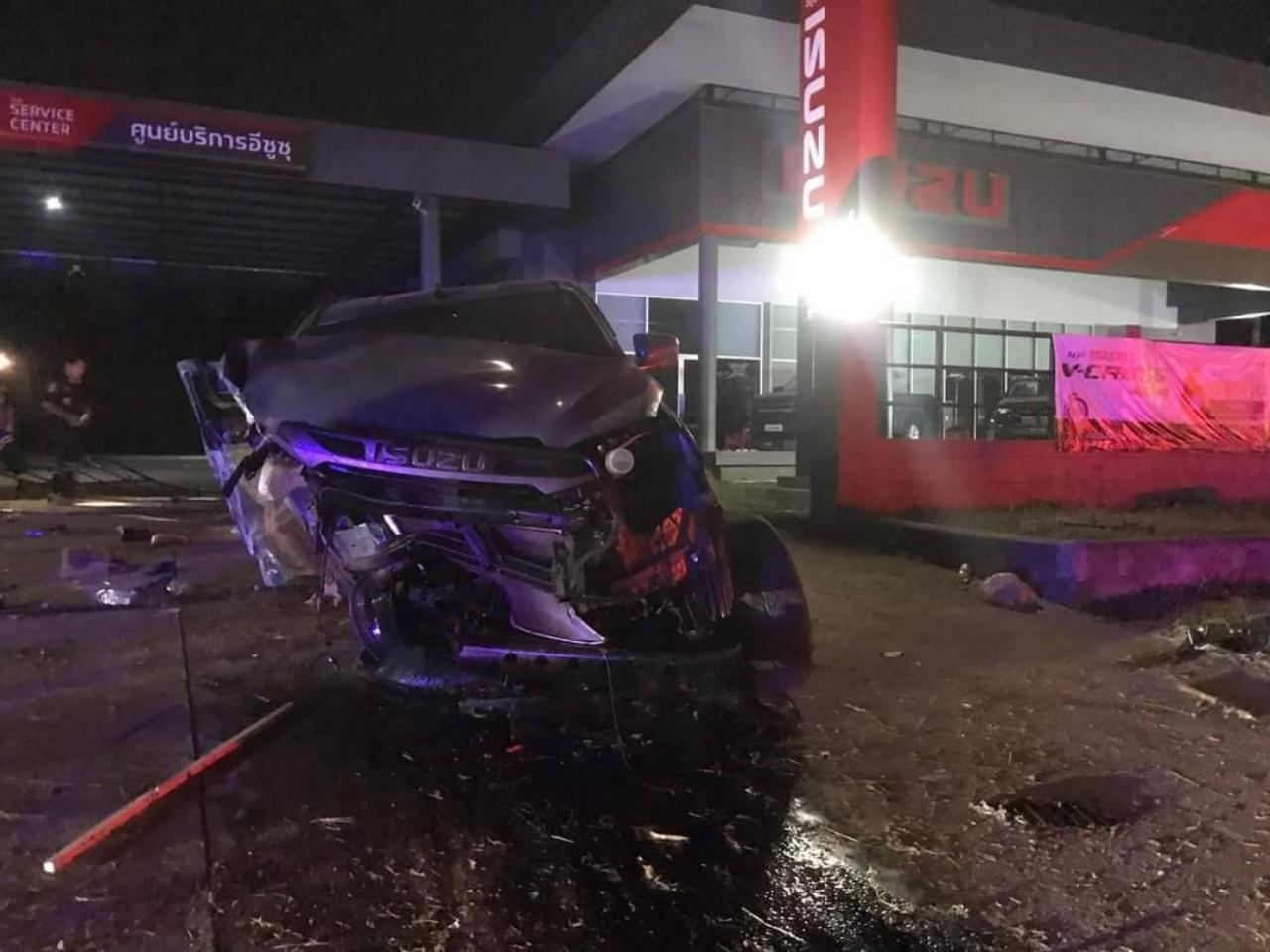 ที่เกิดเหตุบริเวณหน้าโชว์รูมรถยนต์อีซูซุ สาขาวังน้ำเย็น พบรถยนต์กระบะ ยี่ห้ออีซูซุ แค็บ รุ่นดีแมคซ์ สีเทาเปลือกมังคุด หมายเลขทะเบียน 3ฒว 2429 กรุงเทพมหานคร คาดขับมาด้วยความเร็วสูง แล้วเสียหลักตกถนนลงไปในคูระบายน้ำข้างทาง ไปกระแทกกับท่อระบายน้ำพลิกคว่ำ จนกระเด็นไปชนรั้วโชว์รูมรถยนต์อีซูซุฯ จนพังเสียหาย และสภาพรถพังยับเยิน