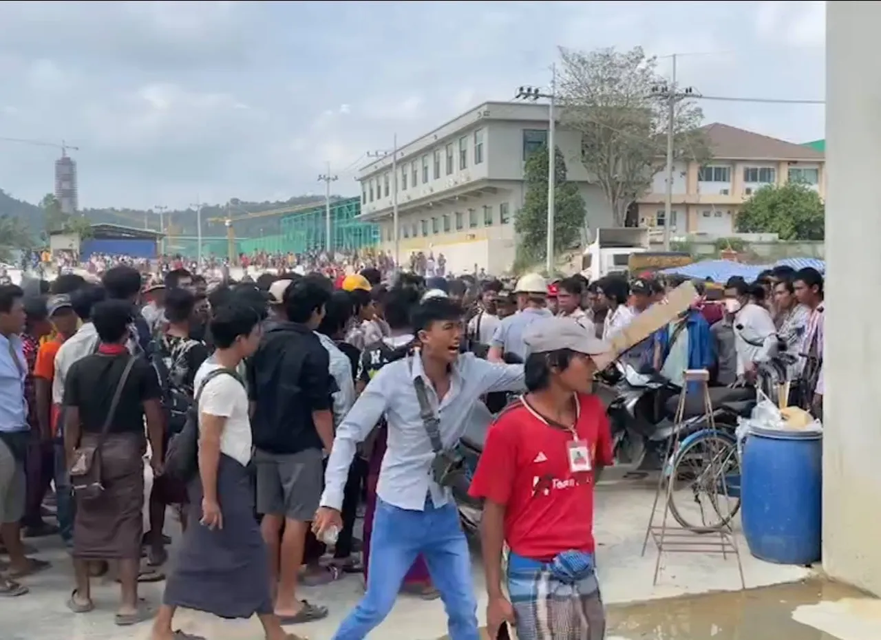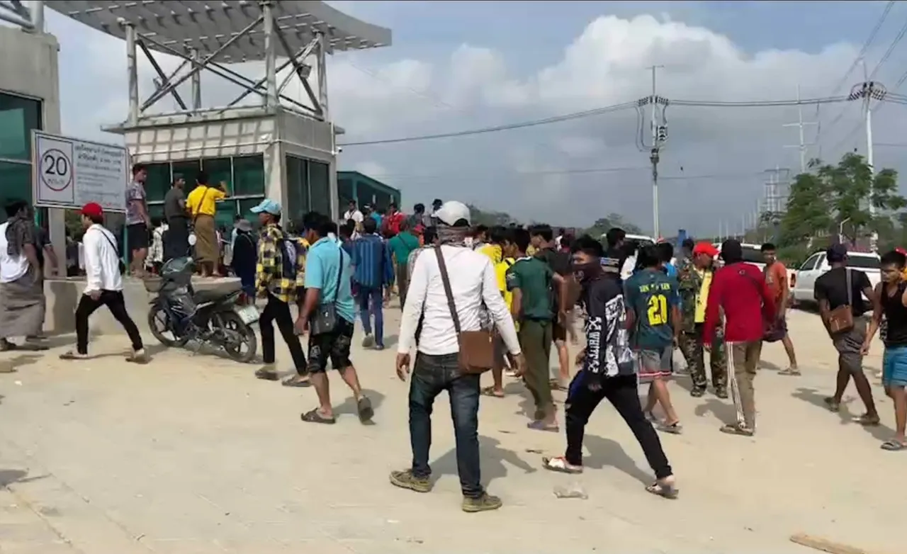 คนงานชาวพม่านับพันรุกฮือ ไม่พอใจนายทุนจีน เจ้าของโรงงานเครนถล่มทับคนงานตาย 7 ศพ ที่ขู่ไล่ออก ต่างหยิบหินก้อนใหญ่ริมถนนหน้าโรงงานขว้างใส่ จนนายจ้างต้องรีบขึ้นรถขับหนีออกไป