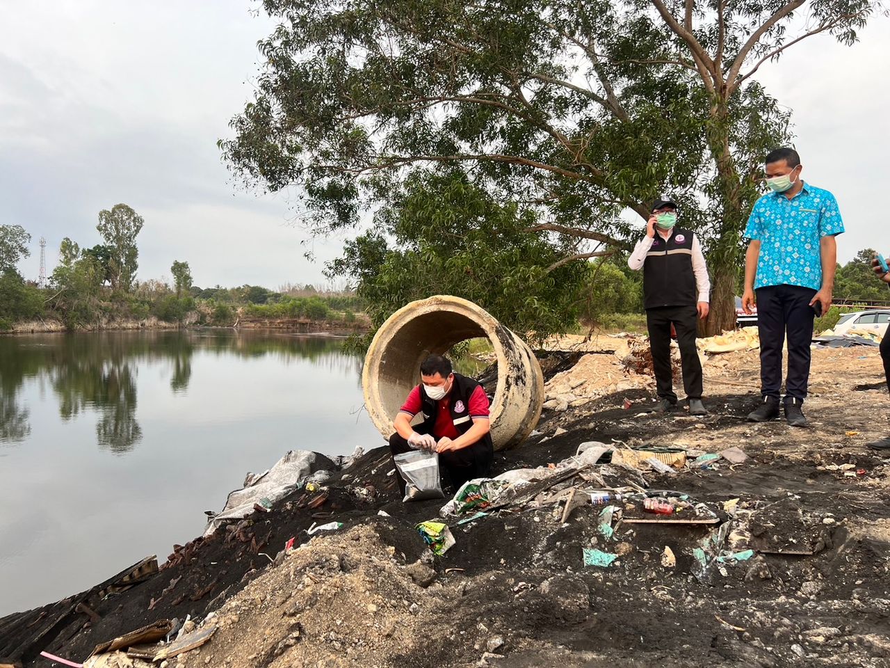 ล่าสุดเมื่อวันที่ 11 เม.ย. 67 นายวิกิจ โรจน์มานะกิจ นายอำเภอบางละมุง, นายดวงจันทร์ อุ่นชาติ วิศวกรปฏิบัติงาน สำนักงานอุตสาหกรรม, นายวินัย อินพิทักษ์ นายกเทศบาลเมืองหนองปรือ, เจ้าหน้าที่ตำรวจหนองปรือ ลงพื้นที่ตรวจสอบลักษณะเป็นฝุ่นตะกอนสีดำ ไหลออกจากถุงบิ๊กแบ็กเรี่ยราดเต็มพื้นที่ริมขอบบ่อ พร้อมเก็บตัวอย่าง สารดังกล่าวที่ถูกนำมาทิ้งไว้ไปตรวจสอบว่ามีส่วนประกอบของสารอันตรายหรือไม่ พร้อมกันพื้นที่ห้ามชาวบ้านเข้าใกล้จุดที่พบสารต้องสงสัยชั่วคราว