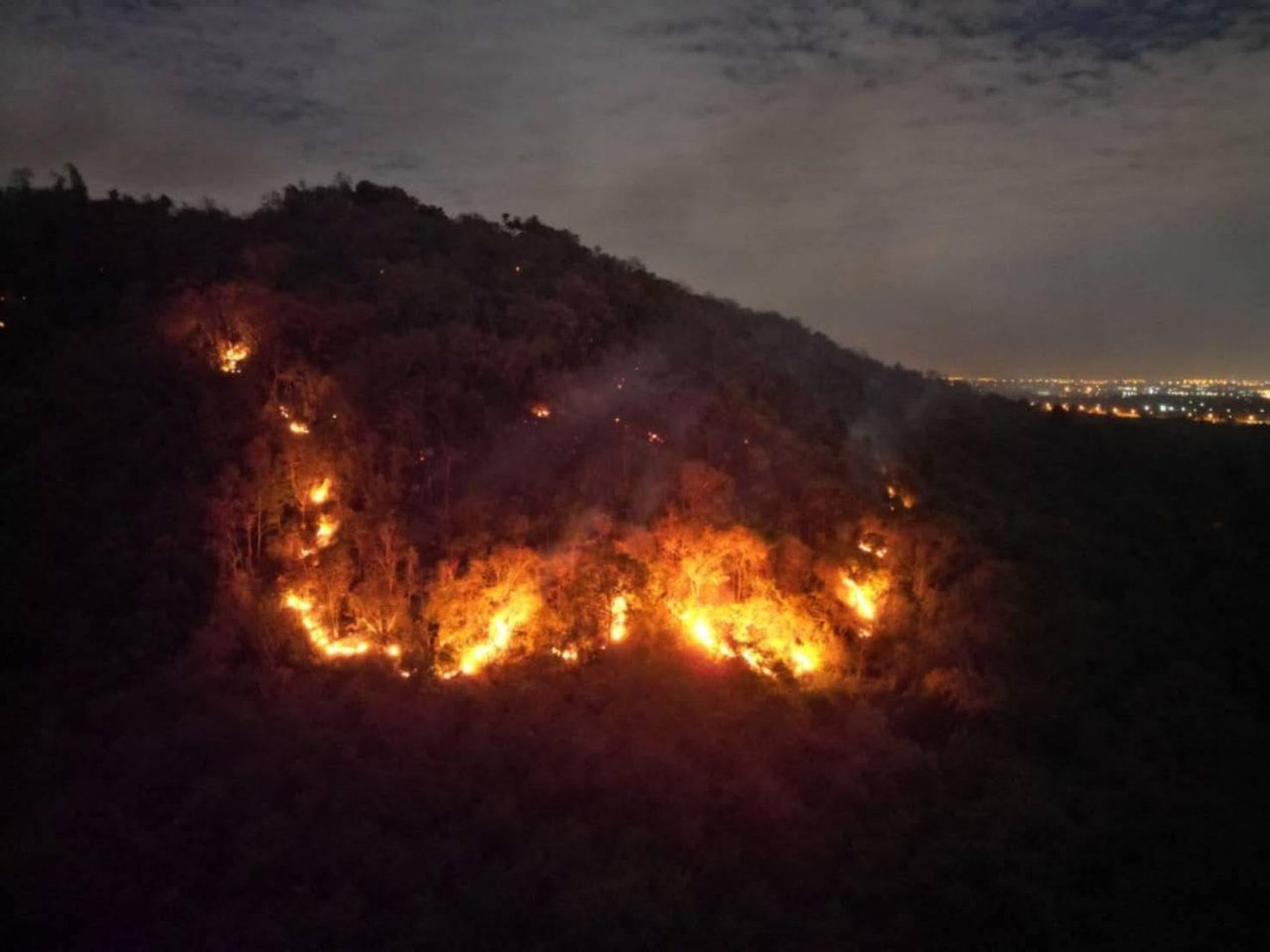 เกิดเหตุไฟไหม้ภูเขา ในพื้นที่ชลบุรีกลางดึก เจ้าหน้าที่-ชาวบ้าน เร่งสกัดหวั่นลามเข้าสำนักสงฆ์ เช้านี้เพลิงเริ่มสงบ เหลือเพียงกลุ่มควัน ยังเฝ้าระวัง เนื่องจากอากาศแห้ง ลมแรง