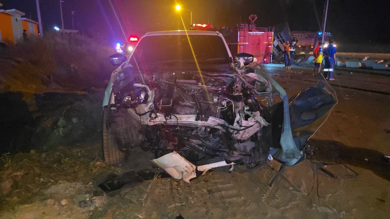 ด้าน นายเฉลิมชัย อายุ 53 ปี คนขับรถกระบะ ได้ให้การว่า ตนเองออกจากทางแยก รถพ่วงได้พุ่งชนเต็มแรง เบื้องต้นเจ้าหน้าที่ตำรวจ ได้เรียกตัวคนขับรถกระบะ และผู้โดยสารที่มากับรถสิบล้อไปทำการสอบสวน พร้อมทั้งตรวจสอบกล้องวงจรปิดจากรถในจุดเกิดเหตุ เพื่อดำเนินการตามขั้นตอนกฎหมายต่อไป.