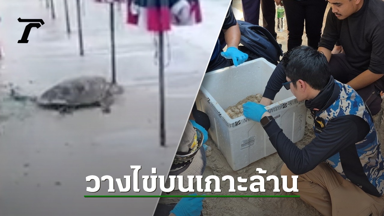 พบ "แม่เต่ากระ" โผล่วางไข่ริมเก้าอี้ชายหาด "เกาะล้าน" นับได้ 157 ฟอง สภาพสมบูรณ์เกือบหมด แตกเสียหายแค่ 4 ฟอง