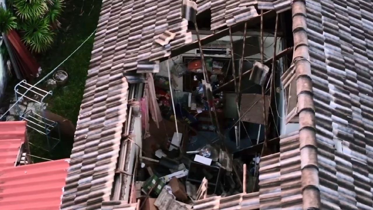 โดยคุณชุติมาพร เจ้าของบ้าน เล่าให้ฟังว่า ช่วงเกิดเหตุกำลังนั่งอยู่กับลูกที่ห้องโถงกลางบ้าน ส่วนสามีอยู่ในห้องนอน ก็ได้ยินเสียงหลังคาลั่น เปรี้ยะ ๆ กำลังจะเดินออกมาดู แล้วก็เห็นหลังคากำลังจะพังลงมา ก็รีบพาลูกวิ่งออกมาข้างนอก รอดตายมาได้อย่างหวุดหวิด ส่วนสามีหลังเกิดเหตุติดอยู่ในห้องนอน ก็ต้องหาทางปีนออกมาได้เช่นกัน