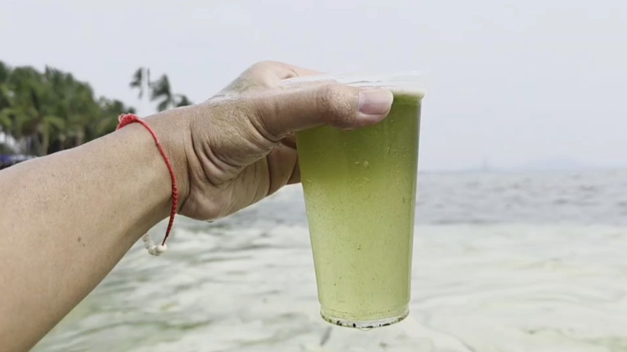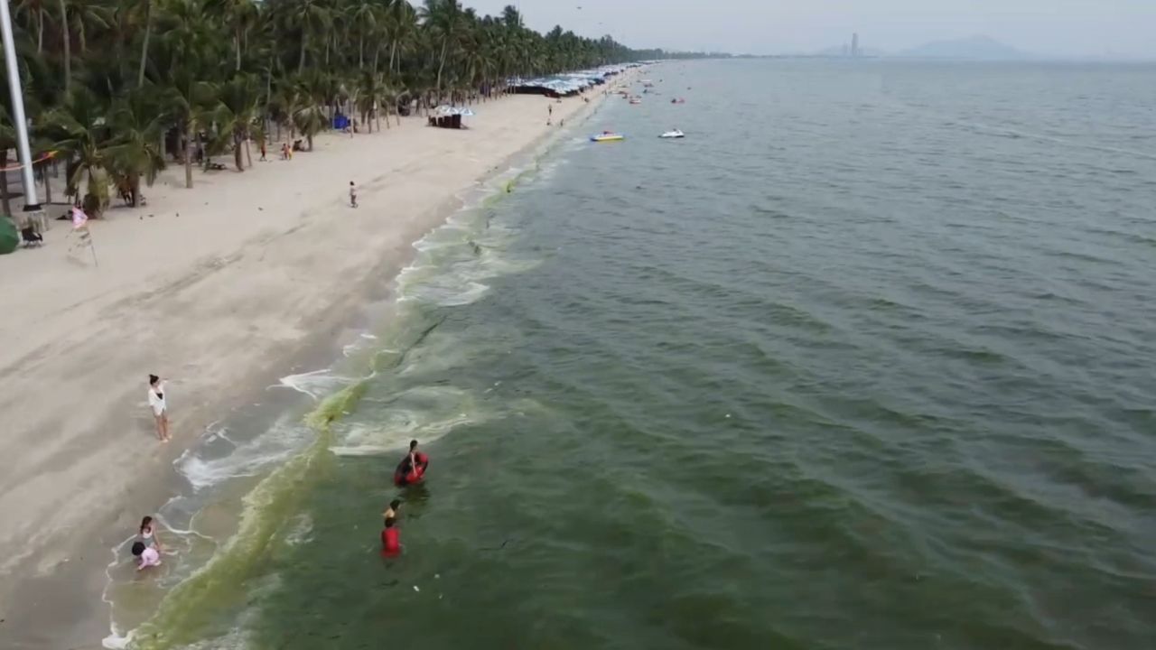 แม่ค้าหาดบางแสนเซ็ง น้ำทะเลสีเขียวรับสงกรานต์ นักท่องเที่ยวไม่กล้าลงเล่นน้ำทะเล นักวิชาการคาดอีกประมาณ 3-7 วันน้ำทะเลจะกลับมาเป็นปกติ