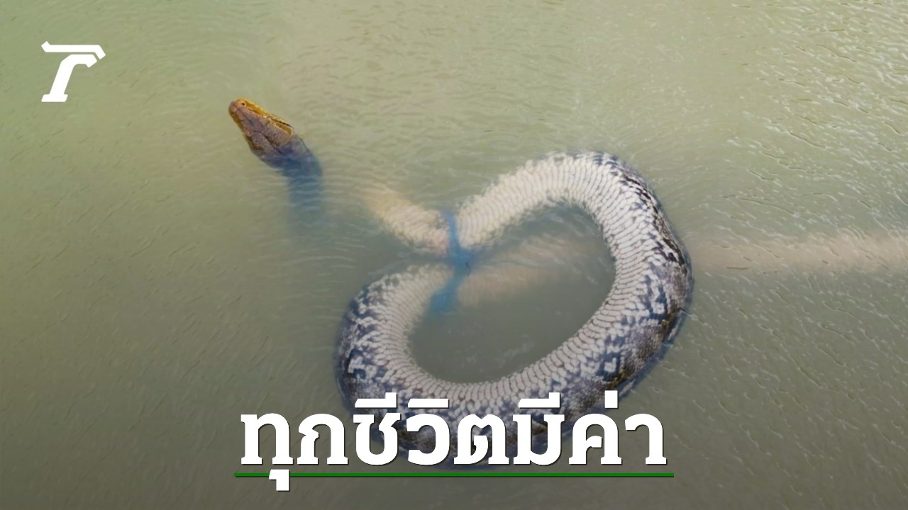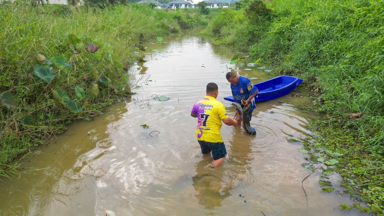 ทุกชีวิตมีค่า กู้ภัยและผู้ใหญ่บ้าน พากันช่วย "งูเหลือม" ขนาดยักษ์ หนักราว 50-60 กก. ติดตาข่ายดักปลาในหนองน้ำห้วยระกำ จ.ชลบุรี