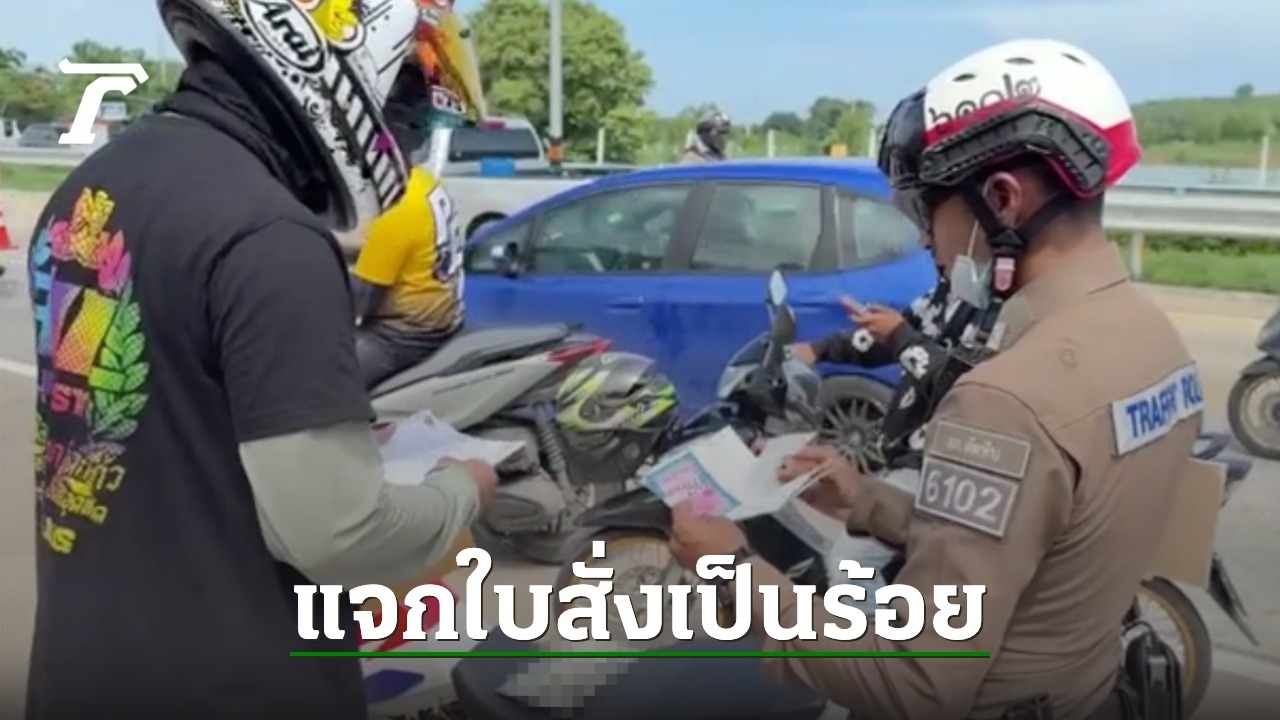 ตำรวจตั้งด่านสกัด "ทริปเฮีย" แก๊งจักรยานยนต์นัดรวมกลุ่มเที่ยวชลบุรี กว่าพันคัน พบทำผิดกฎหมาย แจกใบสั่งเกือบ 400 ใบ ยึดรถกว่า 10 คัน ตรวจสอบเอกสาร
