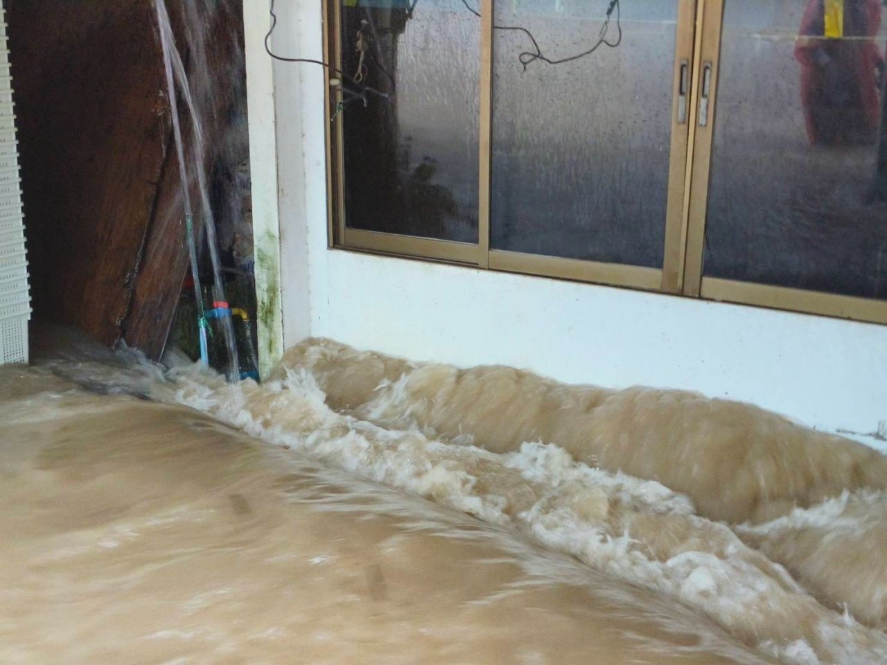 หลังเกิดฝนตกหนักที่คลองใหญ่ จ.ตราด น้ำป่าจากเขาบรรทัดไหลสมทบ ทำน้ำท่วมขังหลายจุด เนื่องจากระบายไม่ทัน