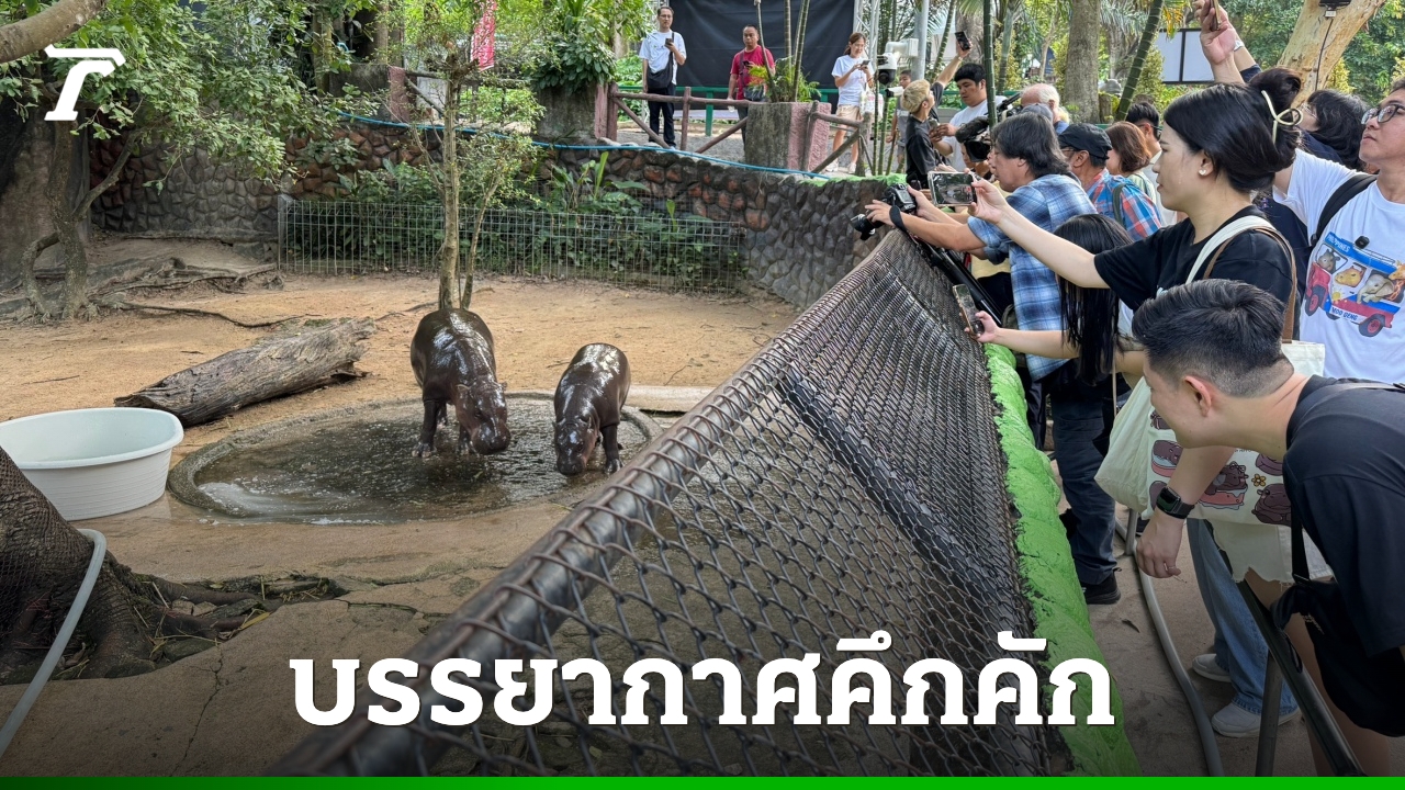 บรรยากาศสุดคึกคัก นักท่องเที่ยวแห่เข้าชม "หมูเด้ง" ฮิปโปแคระเซเลบ ตั้งแต่เช้าที่สวนสัตว์เปิดเขาเขียว จ.ชลบุรี พร้อมร่วมกิจกรรมฉลองวันเกิดครบรอบอายุ 1 ปี