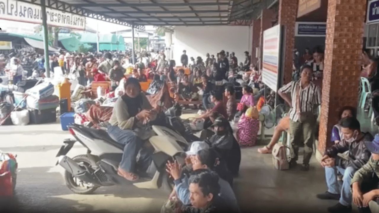 ความคืบหน้าล่าสุด เมื่อเวลา 08.00 น. บรรยากาศบริเวณตลาดบ้านแหลม ต.เทพนิมิต อ.โป่งน้ำร้อน จ.จันทบุรี ซึ่งเป็นช่องทางผ่านแดนถาวร ด่านบ้านแหลม มีประชาชนชาวกัมพูชาหลายพันคนมารอเข้าแถว เพื่อที่จะเดินทางกลับไปยังกัมพูชา เนื่องจากช่องทางเดินบริเวณด่านถาวรบ้านแหลม จะเปิดในเวลา 09.00 - 15.00 น.