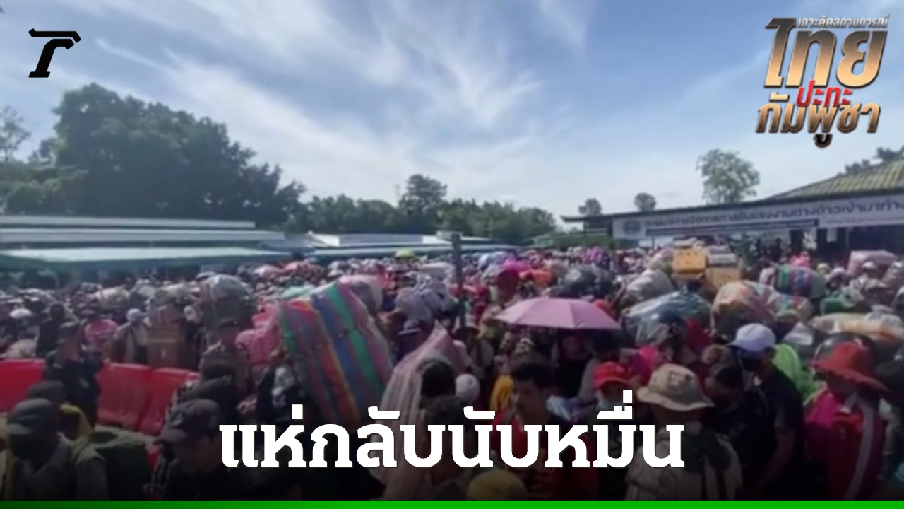 ชาวกัมพูชาแห่เดินทางกลับบ้าน แน่นด่านบ้านแหลม ที่จันทบุรี อีกครั้ง หลังมีข่าว "ฮุนเซน" จะยึดที่คืนหากไม่เดินทางกลับ ขณะที่ร้านค้าแนวชายแดนยังปิดเงียบ
