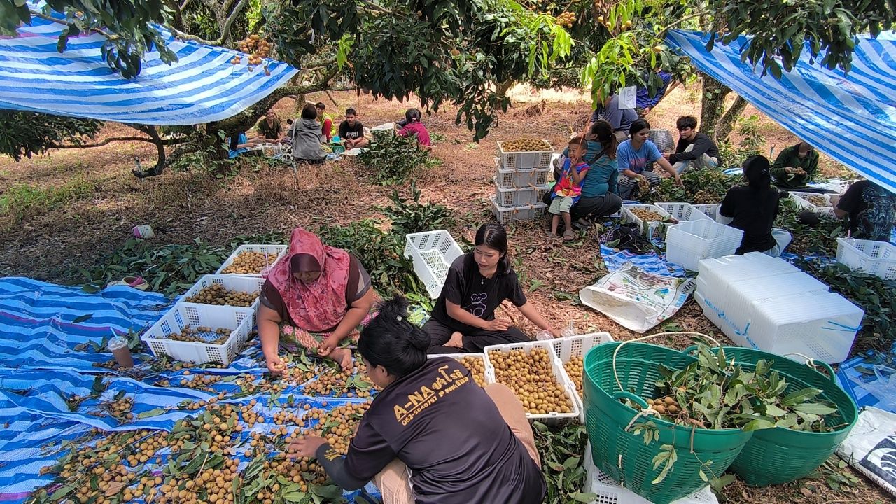 วันที่ 15 ส.ค. 68 ผู้สื่อข่าวรายงานว่า ที่สวนลำไย ต.ปะตง อ.สอยดาว จ.จันทบุรี นายณรงค์เวทย์ มหเศรษฐพงษ์ ฝ่ายจัดซื้อลำไยเพื่อการส่งออก ได้นำแรงงานไทยกว่า 300 คน ลงพื้นที่สวนลำไยเพื่อทำการฝึกสอน พร้อมแนะนำการเก็บลำไย ซึ่งแรงงานคนไทยนี้ เป็นแรงงานทดแทนทางเลือกใหม่ของชาวสวนลำไยในจังหวัดจันทบุรี แทนที่แรงงานกัมพูชาที่กลับประเทศเกือบทั้งหมด โดยสมัครมาจากหลายจังหวัด โดยส่วนใหญ่ราว 90% ไม่เคยเก็บลำไย จึงต้องพามาเรียนรู้วิธีการเก็บ การบรรจุตะกร้า เพื่อให้ได้ตามมาตรฐาน พร้อมส่งออกไปยังต่างประเทศได้ตามกำหนด