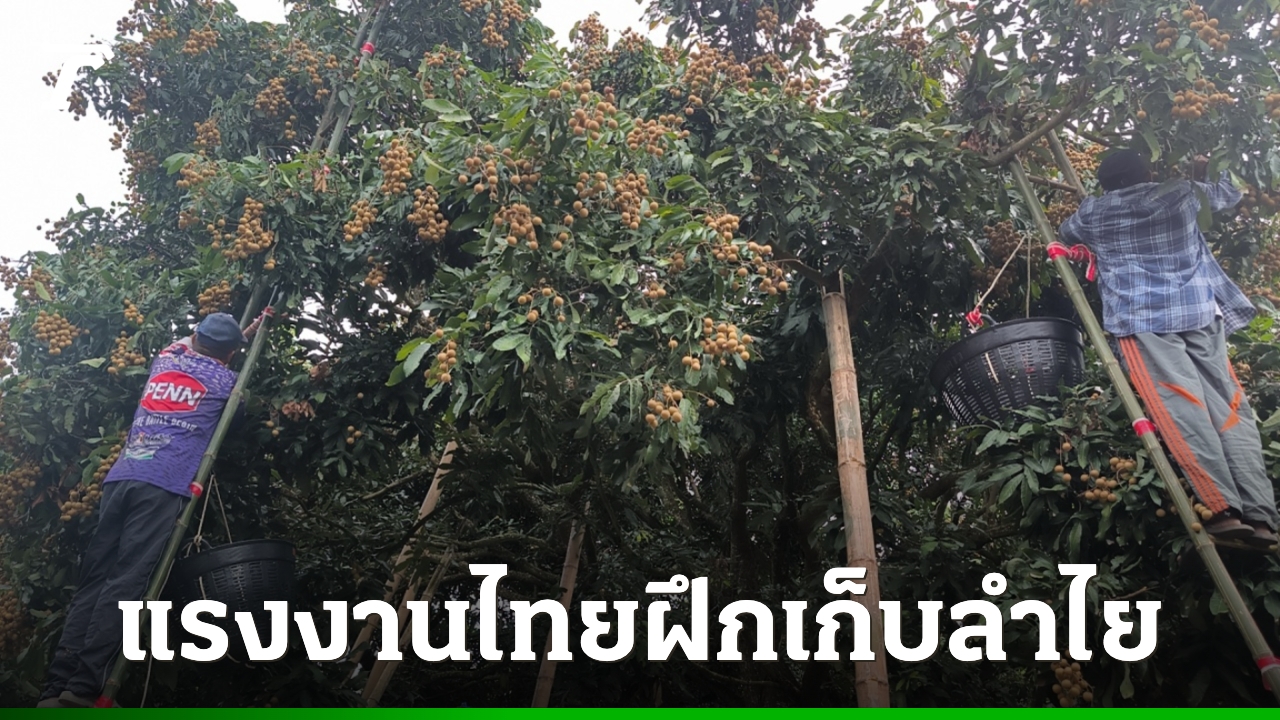 แรงงานไทยลงพื้นที่เก็บลำไยวันแรก ที่จันทบุรี ทดแทนแรงงานกัมพูชาที่กลับประเทศ เจ้าของสวนหายเครียด เชื่อใช้เวลาฝึกไม่นานจะเก่งเหมือนแรงงานเก่า