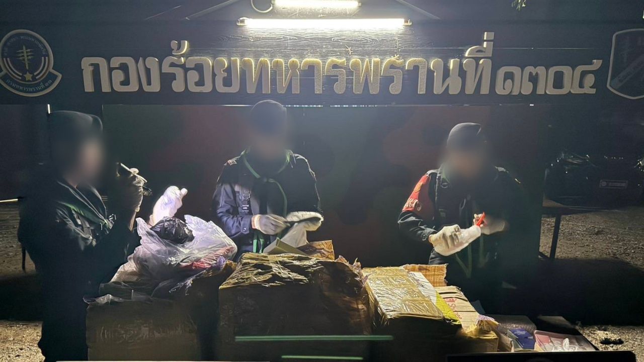 เจ้าหน้าที่จึงนำกำลังเข้าตรวจสอบ พบพัสดุจำนวนมากบรรจุอยู่ในกล่องกระดาษ 3 กล่อง และกระสอบอีก 4 ใบ รวมหนักกว่า 300 กิโลกรัม แต่ไม่พบผู้ใดแสดงตัวเป็นเจ้าของ จึงยึดนำกลับไปตรวจสอบอย่างละเอียดที่กองร้อยทหารพรานที่ 1304 ผลการตรวจสอบพบของกลางสำคัญ ได้แก่ ซิมโทรศัพท์จำนวน 395 หมายเลข, เสื้อผ้า 93 ชิ้น, เครื่องสำอาง 300 ชิ้น, เครื่องทำกาแฟ 1 เครื่อง, เครื่องปั่นน้ำผลไม้ 1 เครื่อง
