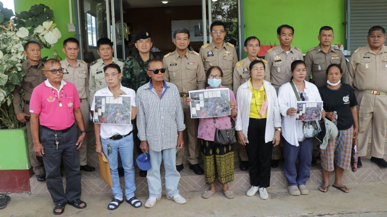 โดยมีเจ้าของที่ดิน 7 แปลง เข้ารับฟังปัญหาการรังวัดที่ดิน โดยเฉพาะแปลง A ที่ยังไม่สามารถเข้าไปดำเนินการรังวัดได้ทั้งแปลง ประมาณ 38 ไร่ เนื่องจากพื้นที่ดังกล่าว อาจจะมีทุ่นระเบิดหลงเหลืออยู่ เพราะเป็นพื้นที่ศูนย์อพยพเขมรมาก่อน ส่วนอีก 6 แปลง สามารถดำเนินการออกรังวัดได้แล้วเสร็จ เจ้าของที่ดินสามารถเข้าไปทำกินในพื้นที่ได้ทันที แต่ขอให้แจ้งเจ้าหน้าที่หน่วยงานความมั่นคงก่อน เพื่อเข้าไปดูแลความปลอดภัยให้กับชาวบ้านที่เข้าทำกินในพื้นที่