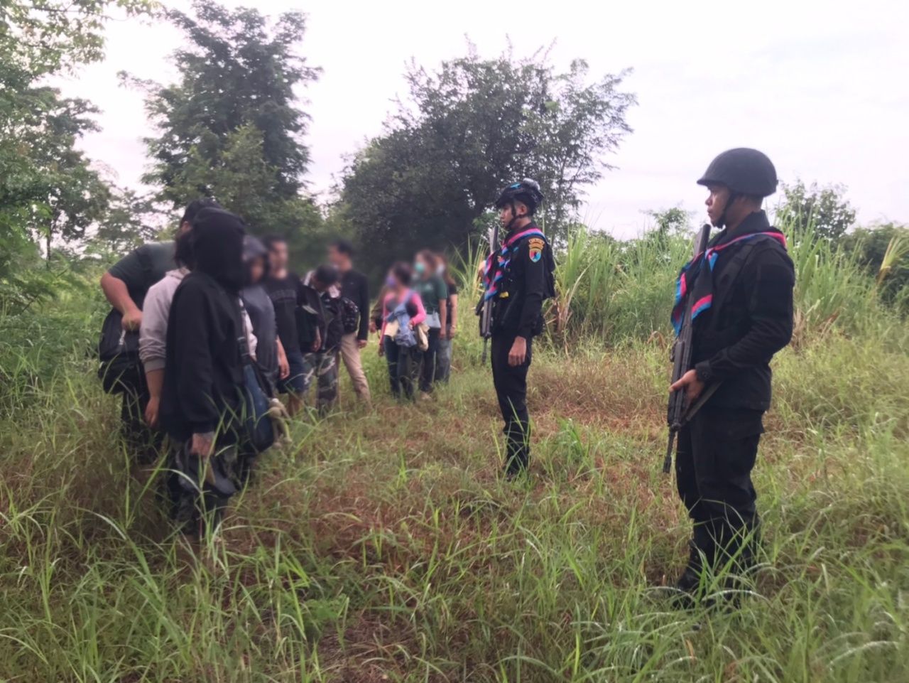 แต่ขณะเจ้าหน้าที่กำลังตรวจสอบอยู่นั้น ผู้นำพาซึ่งเป็นชาวกัมพูชาทั้ง 3 คนได้อาศัยความชุลมุนในไร่อ้อยแยกย้ายกันวิ่งหลบหนีเข้าไปในไร่อ้อยแล้ววิ่งหนีข้ามพรมแดนออกไปฝั่งกัมพูชาได้ เจ้าหน้าที่จึงควบคุมตัวคนไทยทั้ง 13 คน มาซักถามที่ กองร้อยทหารพรานที่ 1206 ต.คลองน้ำใส อ.อรัญประเทศ จ.สระแก้ว