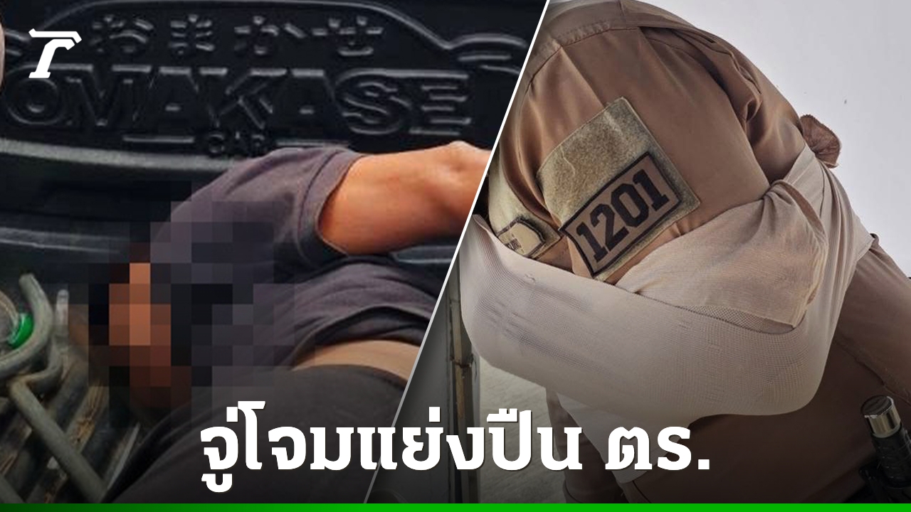 หนุ่มสติไม่ดี จู่โจมถามตำรวจหน้าธนาคาร ปืนมีกระสุนไหม ก่อนเข้าแย่ง จนเกิดการต่อสู้ชุลมุน หลังจับตัวได้ ตำรวจเจ็บไหล่หลุด