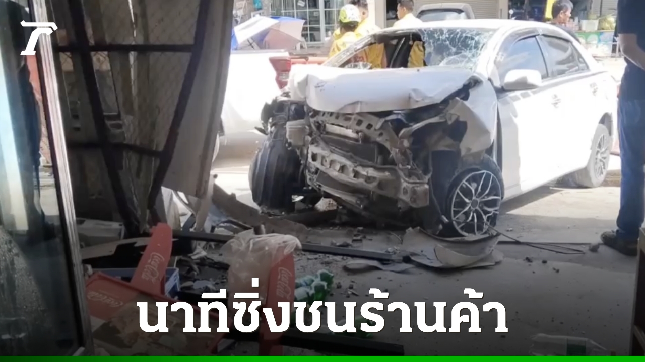 เปิดนาทีเก๋งซิ่งแหกด่าน หนีตำรวจ สุดท้ายไม่รอดเสียหลักพุ่งชนร้านค้าริมทาง รถพังยับ-คนขับเจ็บหนัก ตรวจเจอยาไอซ์ และยาบ้าอีก 200 เม็ด
