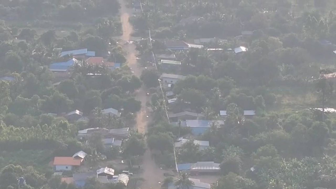 จากภาพมุมสูงที่ได้จากโดรนของกองกำลังบูรพาในช่วงเช้าวันนี้ พบว่า บริเวณแนวชายแดนยังคงสงบเรียบร้อย ไม่พบการรวมกลุ่มของชาวกัมพูชาเพิ่มเติม หรือการเคลื่อนไหวผิดปกติใด ๆ ขณะที่ฝั่งกัมพูชา ยังคงมีเจ้าหน้าที่ทหารประจำจุดตามแนวรั้วชายแดน โดยบางส่วนยังคงใช้กล้องส่องทางไกลและอุปกรณ์สื่อสารรายงานความเคลื่อนไหวมายังผู้บังคับบัญชาอย่างต่อเนื่อง