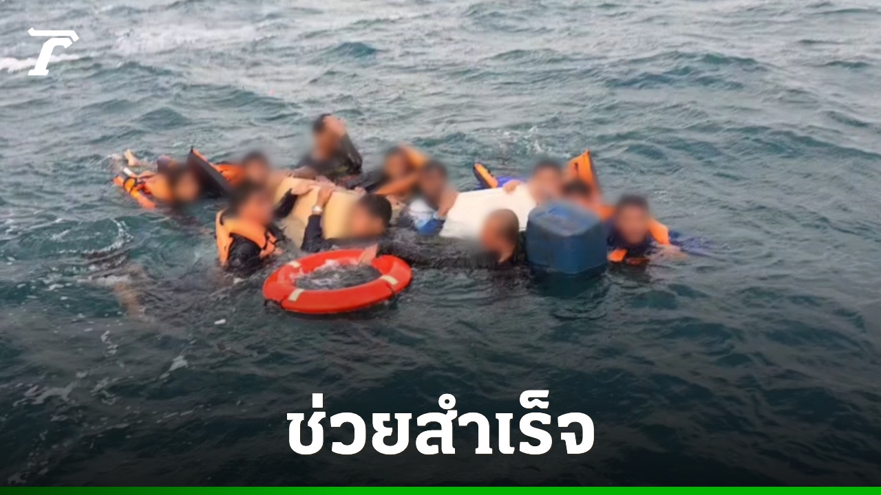 ระทึก เรือตกปลาล่มกลางทะเลเกาะล้าน ลอยคอนานกว่า 7 ชั่วโมง ล่าสุดเจ้าหน้าที่ช่วยชีวิตไต๋-ลูกเรือ 12 ชีวิตได้สำเร็จ