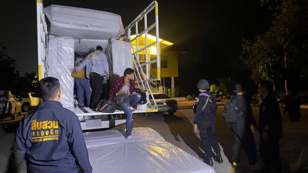 เจ้าหน้าที่คุมเข้ม สกัดจับขบวนการลักลอบขนแรงงานต่างด้าว จ.สระแก้ว คุมตัวชาวกัมพูชา 37 ชีวิต ลักลอบเข้าเมือง ซุกซ่อนตัวในรถบรรทุกฟองน้ำ-คนขับทิ้งรถหลบหนี