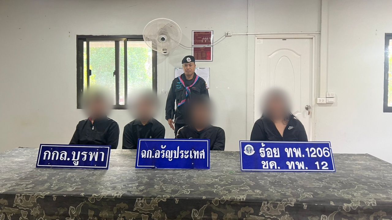 เมื่อเวลา 06.30 น. วันที่ 3 ก.พ. 69 พ.อ.ชัยณรงค์ กาสี ผบ.ฉก.อรัญประเทศ กกล.บูรพา ร่วมกับ พ.อ.พงศกร เสืองาม ผบ.ชค.ทพ.12 นำกำลังพล ร้อย ทพ.1206 และ ชุด ลว.ฉก.อรัญประเทศ เข้าจับกุมตัวคนไทย 4 คน ขณะเดินเท้าลักลอบข้ามแดนผ่านทางช่องธรรมชาติจากฝั่งกัมพูชา เข้ามาในประเทศไทย บริเวณทุ่งนา ท้ายหมู่บ้านกุดหิน ม.4 ต.คลองน้ำใส อ.อรัญประเทศ จ.สระแก้ว ห่างเส้นทางหลวงหมายเลข 3366 ประมาณ 300 เมตร