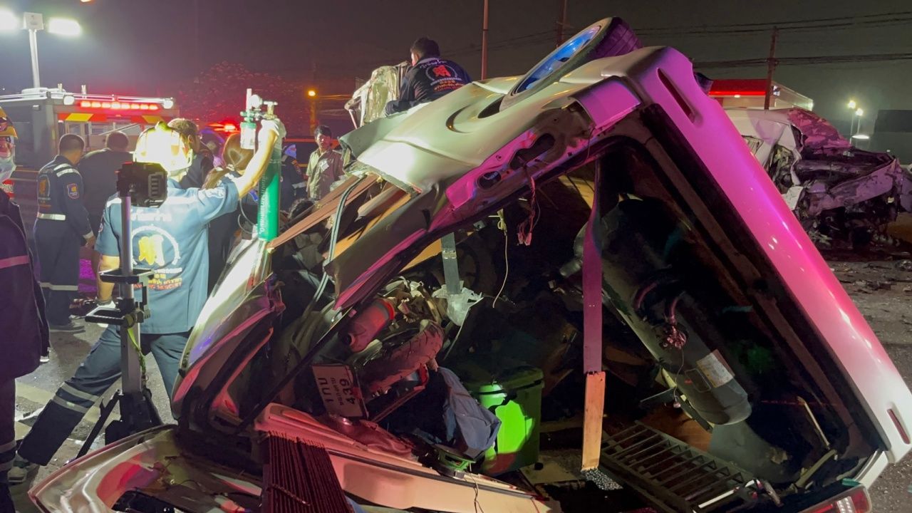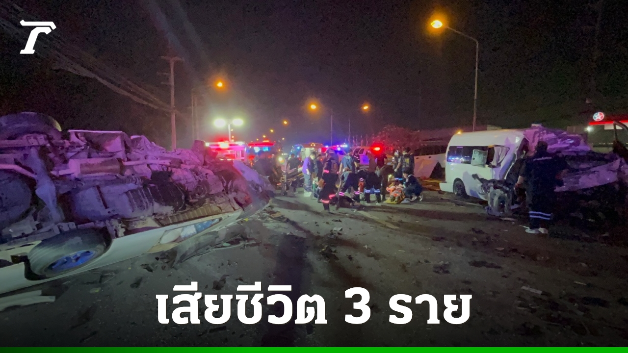 เมื่อเวลา 05.00 น. วันที่ 19 กุมภาพันธ์ 2569 พ.ต.ท.อำนาจ กำพล สว.สอบสวน สภ.แหลมฉบัง อ.ศรีราชา จ.ชลบุรี ได้แจ้งเหตุรถยนต์ตู้หลุดโค้ง ข้ามเลนพุ่งชนอัดหน้ารถตู้เช่าเหมาคัน ส่งผลให้มีผู้เสียชีวิตคาที่ 3 ราย และผู้ได้รับบาดเจ็บรวม 16 ราย เหตุเกิดบนถนนสุขุมวิท ช่วงโค้งบ้านนา ฝั่งขาเข้าพัทยา ต.ทุ่งสุขลา อ.ศรีราชา จ.ชลบุรี จึงรีบรุดไปตรวจสอบพร้อมด้วยเจ้าหน้าที่ฝ่ายสืบสวน และเจ้าหน้าที่หน่วยกู้ภัยระหว่างประทีปศรีราชา
