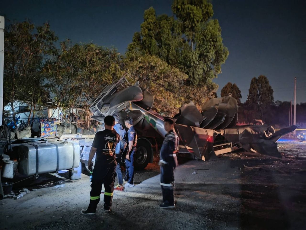 บึมสนั่นชลบุรี ถังน้ำมันเปล่าขนาด 5 หมื่นลิตรท้ายรถบรรทุกระเบิด คนงานดวงซวยเดินผ่านถูกอัดร่างเสียชีวิต 1 ศพ ตำรวจเร่งหาสาเหตุ