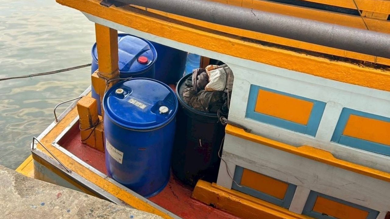 ตำรวจน้ำ ร่วมกับสรรพสามิต จ.ตราด ลุยตรวจค้น "เรือประมง" ต้องสงสัย ลักลอบขนน้ำมันหนีภาษี 3,800 ลิตร มูลค่ากว่า 1 แสนบาท เจ้าของเรืออ้างซื้อมาจากกลางทะเล จนท. คุมตัวแจ้งข้อหา