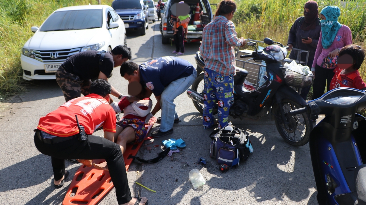 ทั้งนี้ พบ นางนวล เซีย อายุ 25 ปื สัญชาติกัมพูชา ผู้ขับขี่รถจักรยานยนต์ ฮอนด้า เวฟ สีดำ ไม่ติดแผ่นป้ายทะเบียน ลักษณะพ่วงข้าง นั่งได้รับบาดเจ็บอยู่กลางถนน และพบนางสาวนะ อายุ 23 ปี น้องสาว และเด็กผู้ชาย 2 คน เด็กผู้หญิง 1 คน ที่ได้รับบาดเจ็บถลอกตามร่างกาย ศีรษะแตก เจ้าหน้าที่ทำการปฐมพยาบาล ก่อนจะนำตัวส่งโรงพยาบาลบางปะกง รวม 5 ราย