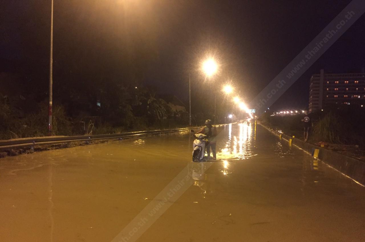 เมื่อช่วงหัวค่ำวันที่ 22 มิ.ย.60 มีรายงานว่า ในพื้นที่เมืองพัทยา อ.บางละมุง จ.ชลบุรี ได้มีฝนตกกระหน่ำลงมาอย่างหนักต่อเนื่องกว่า 1 ชั่วโมง จนระบายไม่ทันทำให้เกิดน้ำท่วมขังหลายจุด อาทิ ถนนสุขุมวิท ถนนพัทยาสาย3 และถนนเลียบชายหาด มีปริมาณน้ำสูงเฉลี่ยกว่า 30-50 ซม.ทำให้รถยนต์ขนาดเล็กสัญจรไปมาด้วยความยากลำบาก