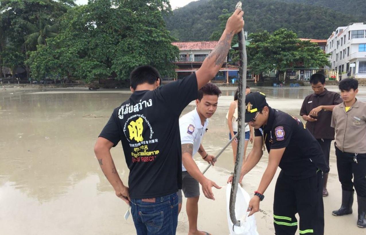 กู้ภัยที่เกาะช้างมีภารกิจเพิ่มในช่วงฤดูฝน อสรพิษสารพัดชนิดเลื้อยออกจากป่าเข้าไปในอาคารสถานที่ทั้งบ้าน ร้านอาหาร รีสอร์ต ล่าสุดงูจงอาจยาว 2 เมตร โผล่โชว์ตัวบนชายหาด สร้างความหวาดเสียวฮือฮาให้นักท่องเที่ยว...