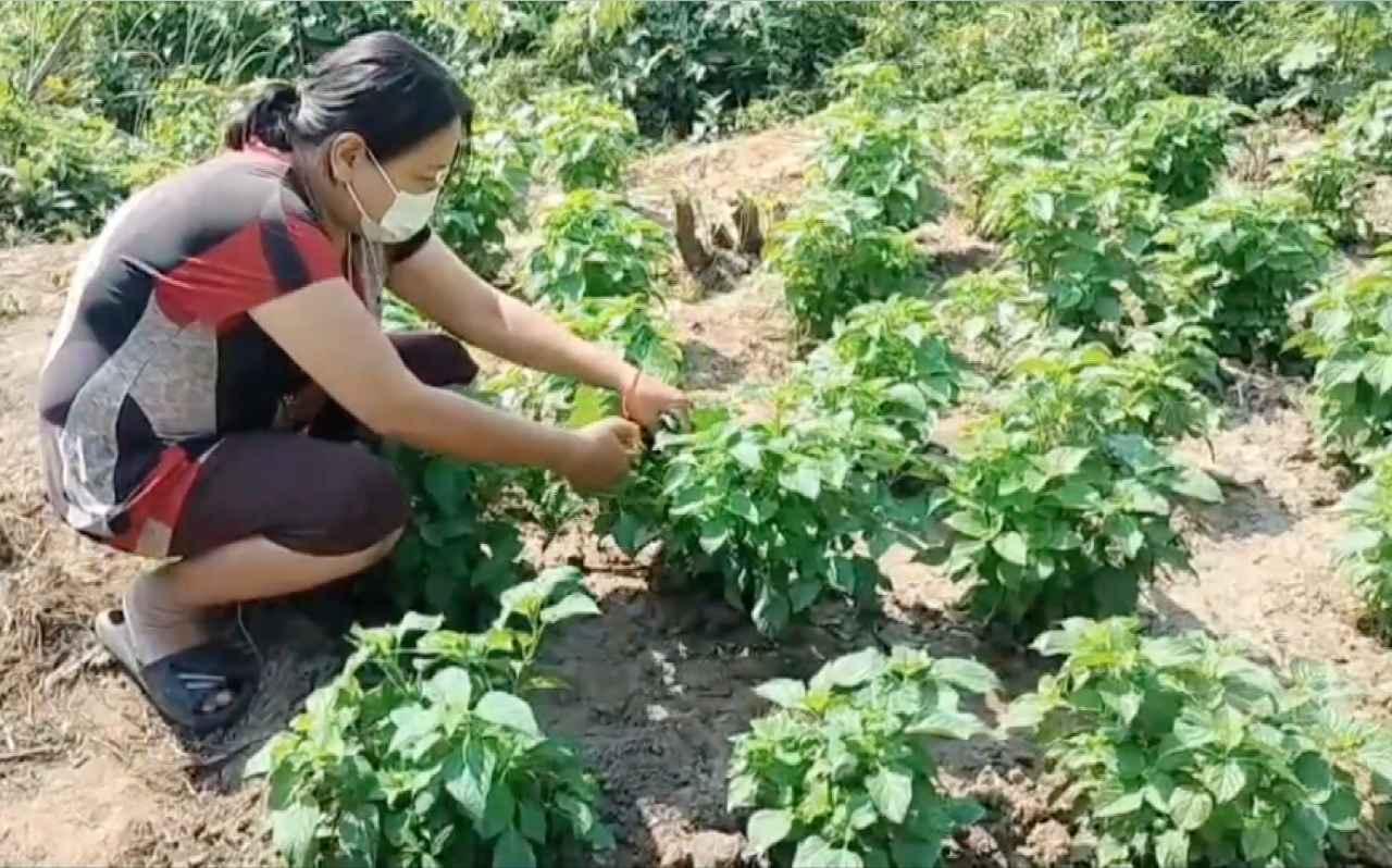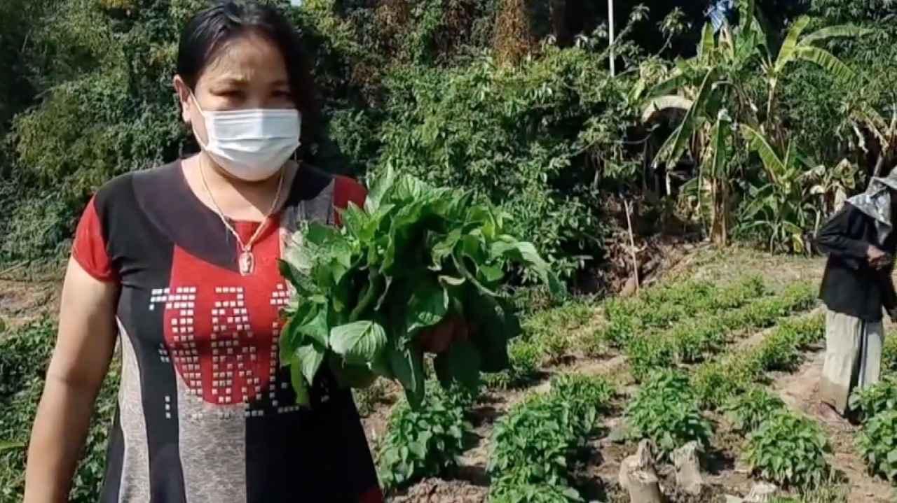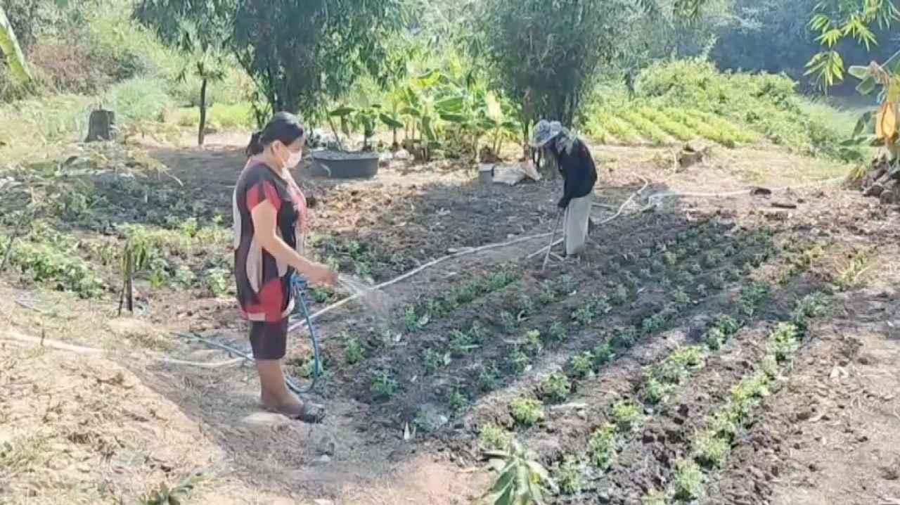 นางอาพร คำดี อายุ 47 ปี ลูกสาวคุณตายงค์ เล่าว่า ตนเคยทำงานที่โรงงาน แล้วก็ออกจากงานมาค้าขาย ช่วงโควิดขายของไม่ดี ก็เลยหันมาทำพืชผักสวนครัว แรกๆ ก็ปลูกนิดหน่อยเพื่อรับประทานภายในครอบครัว ต่อมาพ่อก็เลยเสนอว่าเพิ่มพื้นที่ขยายขึ้นอีก พอดีมีพื้นที่อยู่ก็ปลูกจำพวก ใบแมงลัก ใบกะเพรา ใบยี่หร่า ของกินในชีวิตประจำวัน แล้วมีแม่ค้ามารับ ถ้ามีเวลาก็กำขายในหมู่บ้าน ราคากำละ 5-10 บาท หรือถ้าขายส่งให้แม่ค้าก็จะขายในราคากิโลกรัมละ 50 บาท รายได้ประมาณ 200-500 บาททุกวัน